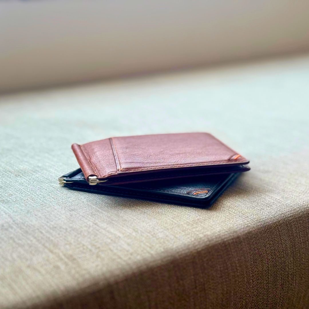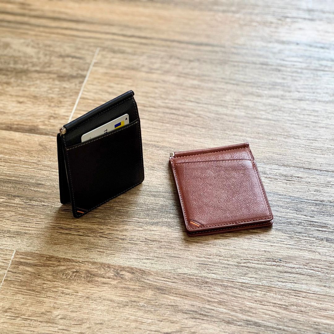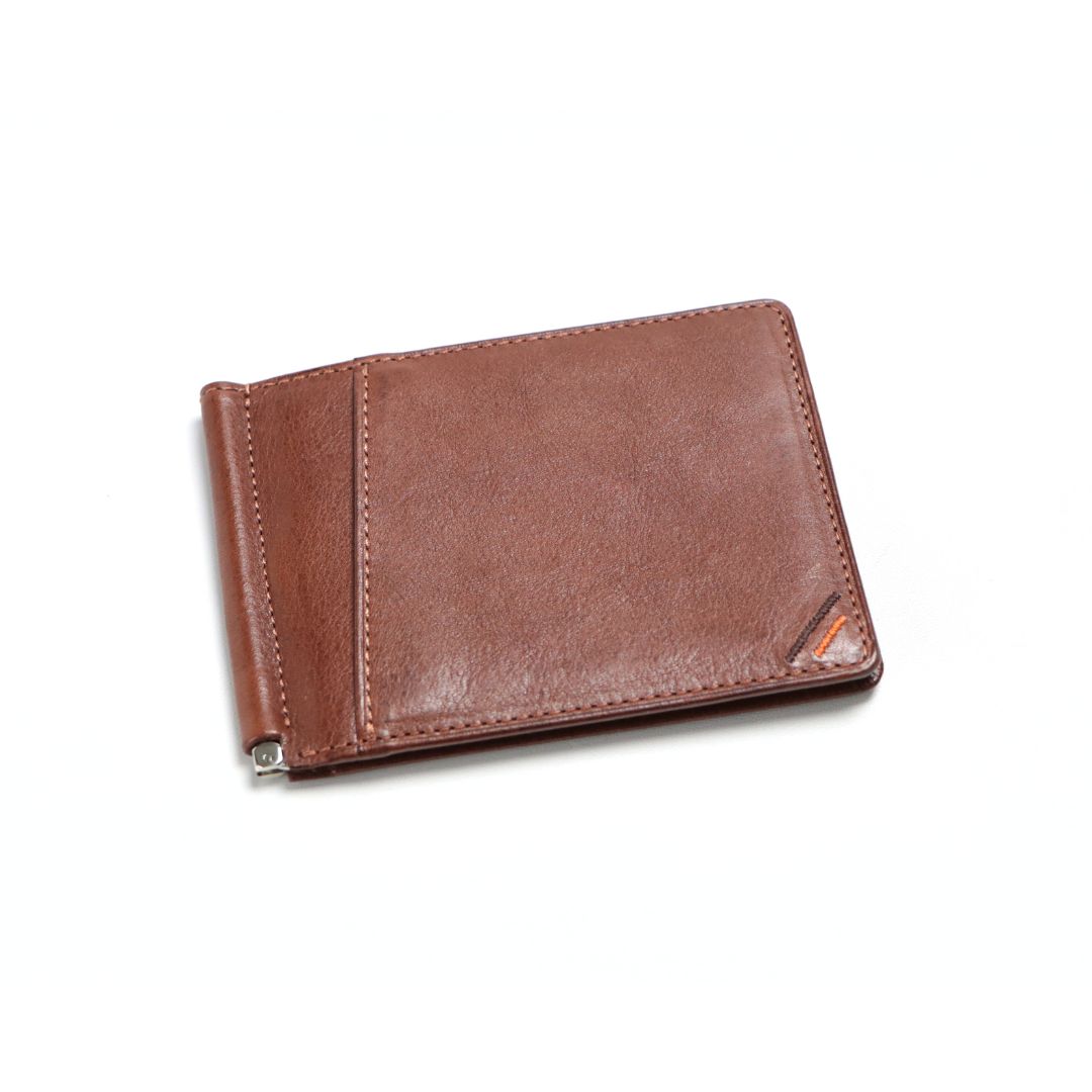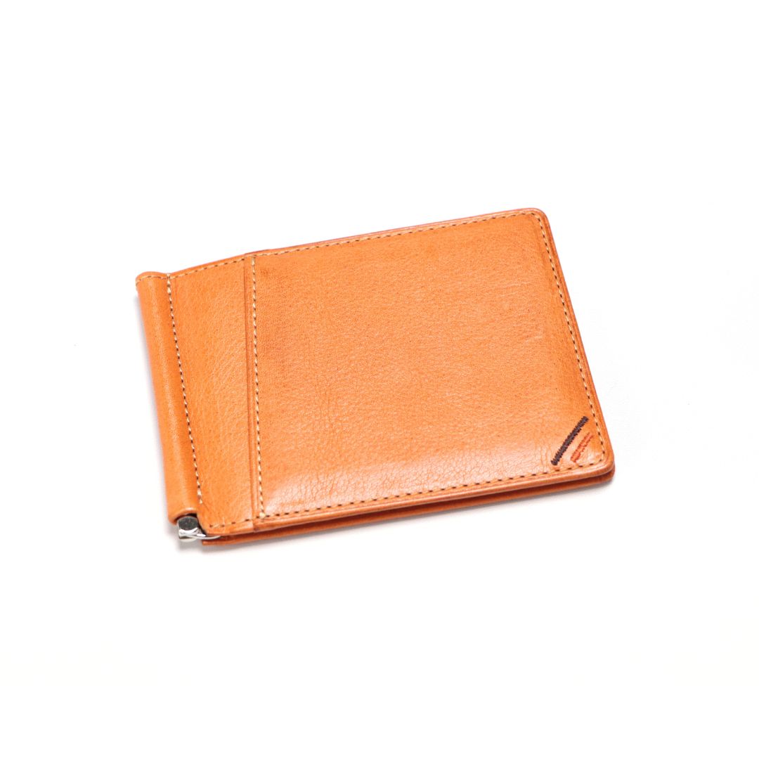 紙鈔夾皮夾的主角,用來夾住鈔票的金屬零件。雖然只是用金屬夾夾住鈔票,卻可發出〝鏘〞的聲響,可見金屬夾的緊實程度。金屬夾上更是細心地刻印上「KAWASHOKUNIN L‧F」商標,更顯華麗。