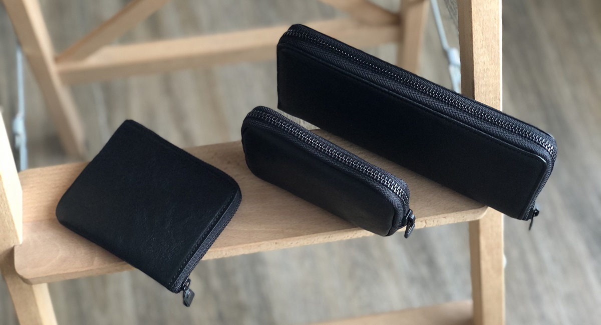 台灣店首次以定番商品「Repletion 萬用包」企劃了數量限定的全黑色款式,一樣有2種內裏顏色 – 藍色🔵及紫色🟣豬麂皮。內口袋上的品牌Logo也換上原創的圓形造型,這是職人手工烙印而成。此外,內附一可拆式銀色鑰匙鏈,作為鑰匙包🔑用也很方便 ♪