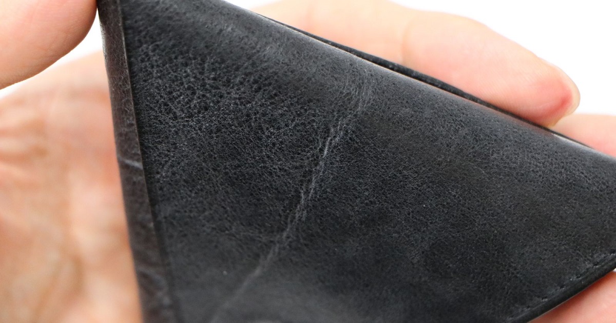 此種蠟的附著力相當牢固,不會因輕微地摩擦而脫落。經年使用後,白蠟才會逐漸退逝並顯露出皮革的原始顏色。上圖是使用了5個月的三角型零錢包。皮革有著皺紋肌理,因此白蠟會殘留於此凹陷處,經年使用後,此處的蠟也會逐漸流逝而顏色將更添光澤。與一般皮革相較,外觀於使用前後的變化大,是一款可充分地讓人享受養成變化樂趣的皮革!