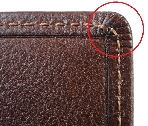 註:摺邊縫法,是指將外層皮革的邊,以均一的寬度,反摺黏貼於內層皮革後再車縫固定的方式。